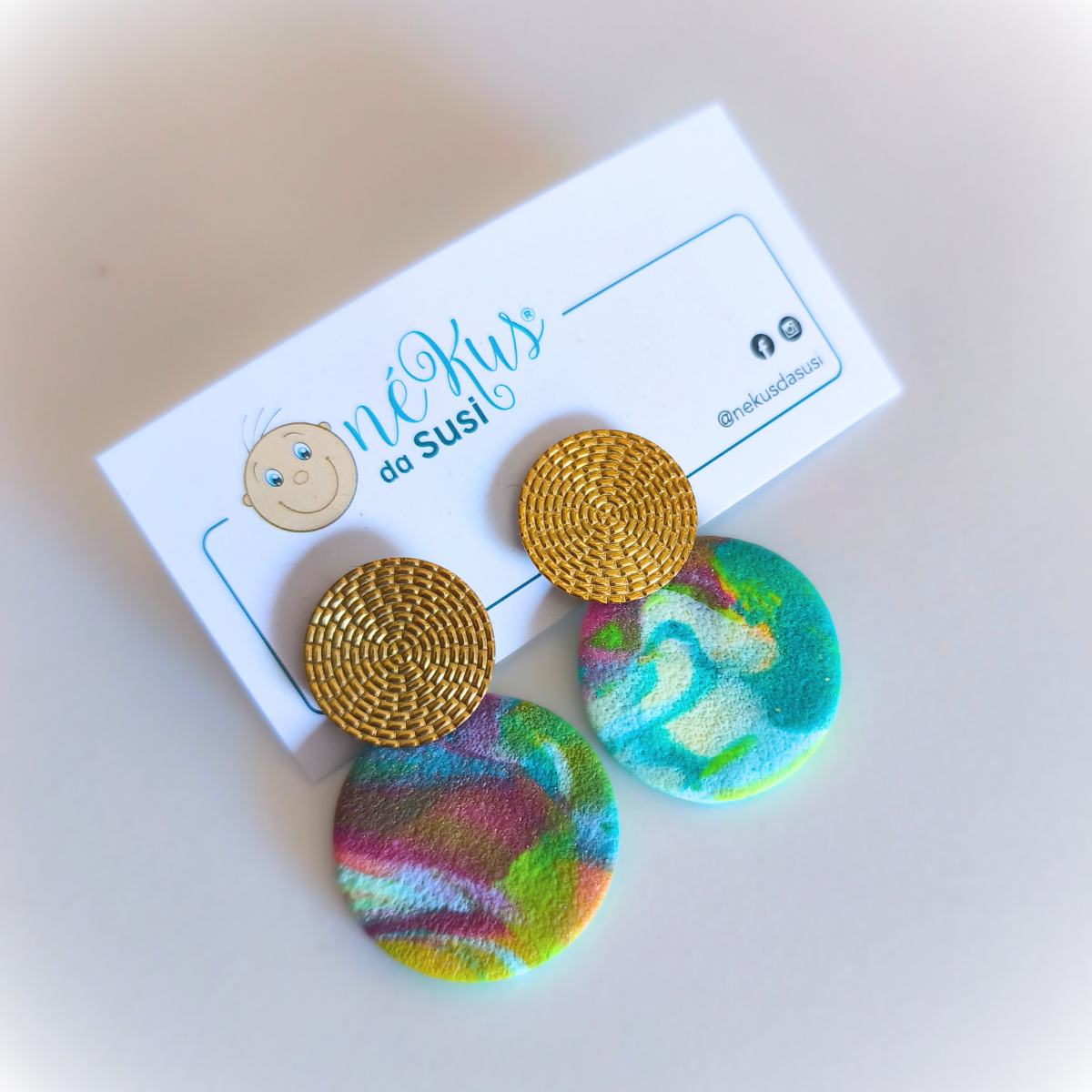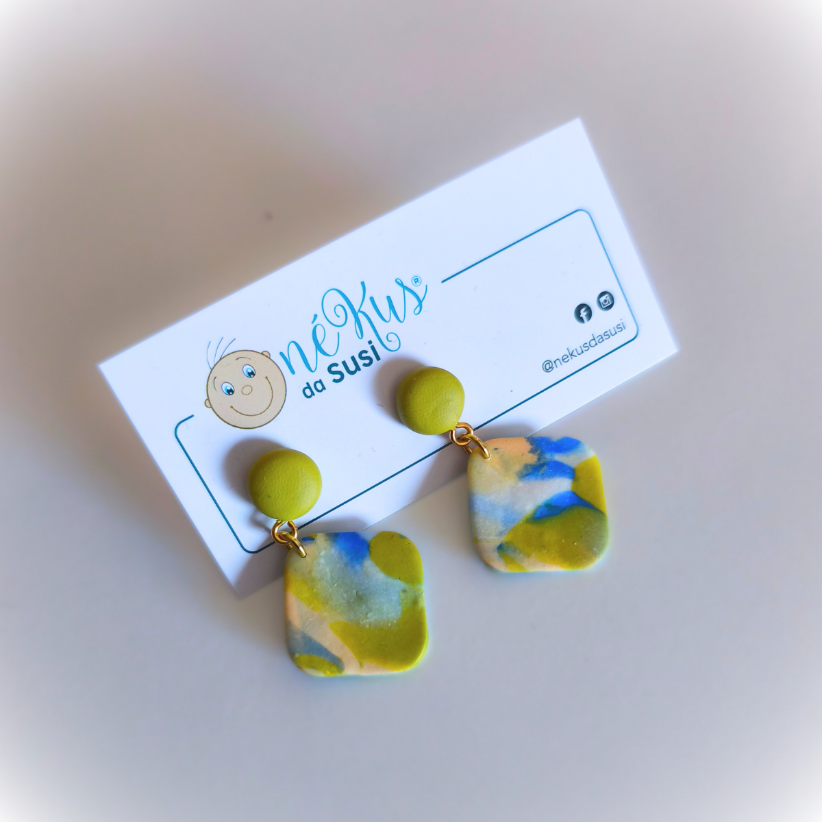 A base dos brincos é feita em aço, garantindo durabilidade e resistência, e as peças são em FIMO. Cada par é único, refletindo o cuidado e a arte da sua produção. O resultado é um acessório que não só embeleza, mas também exprime a tua personalidade.