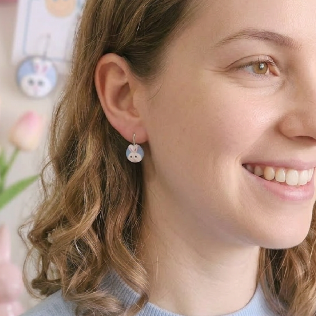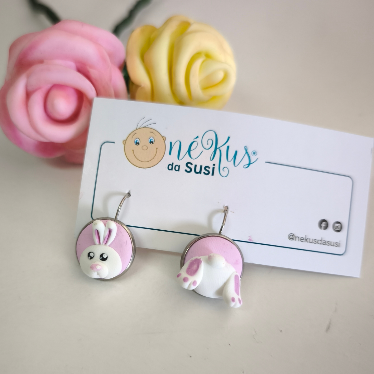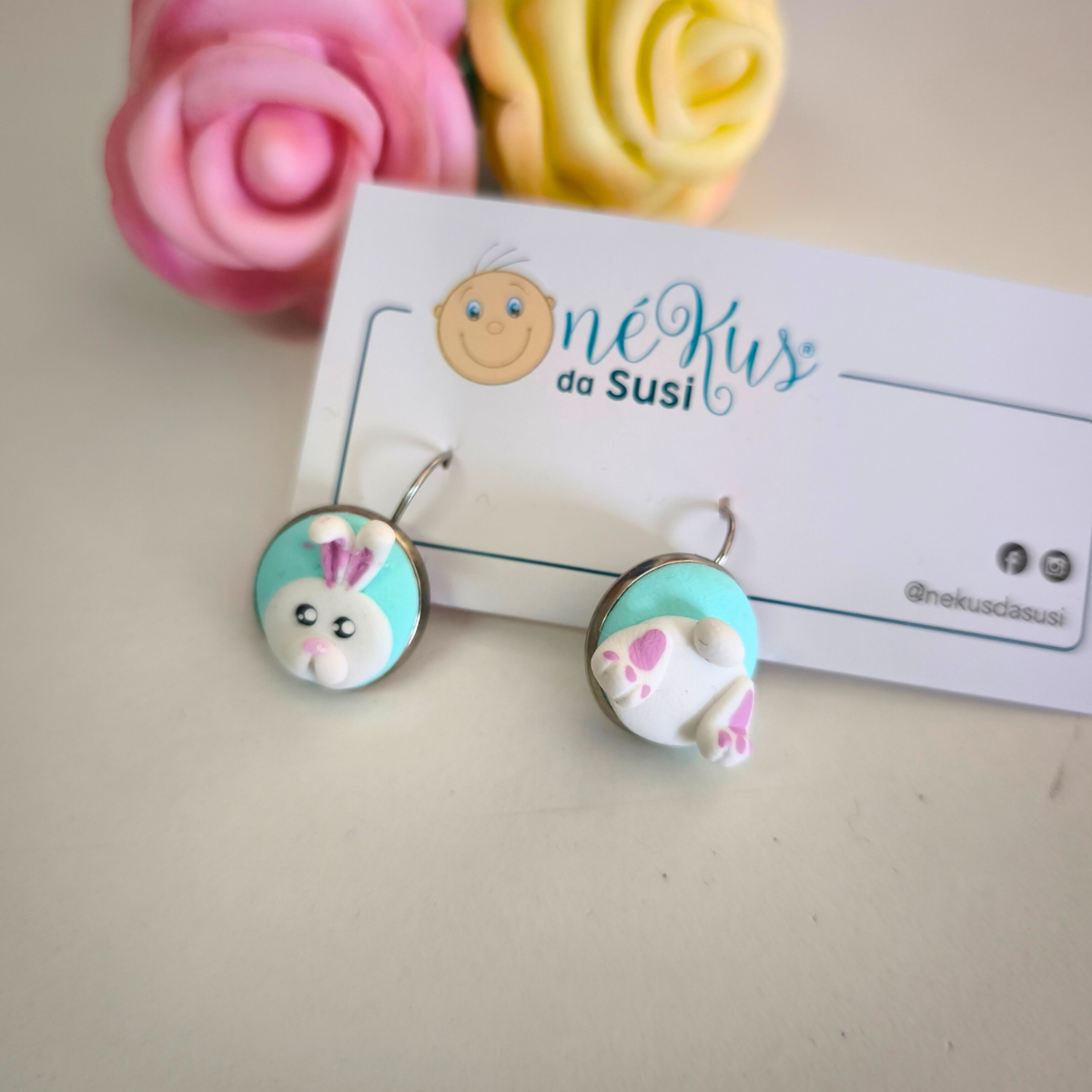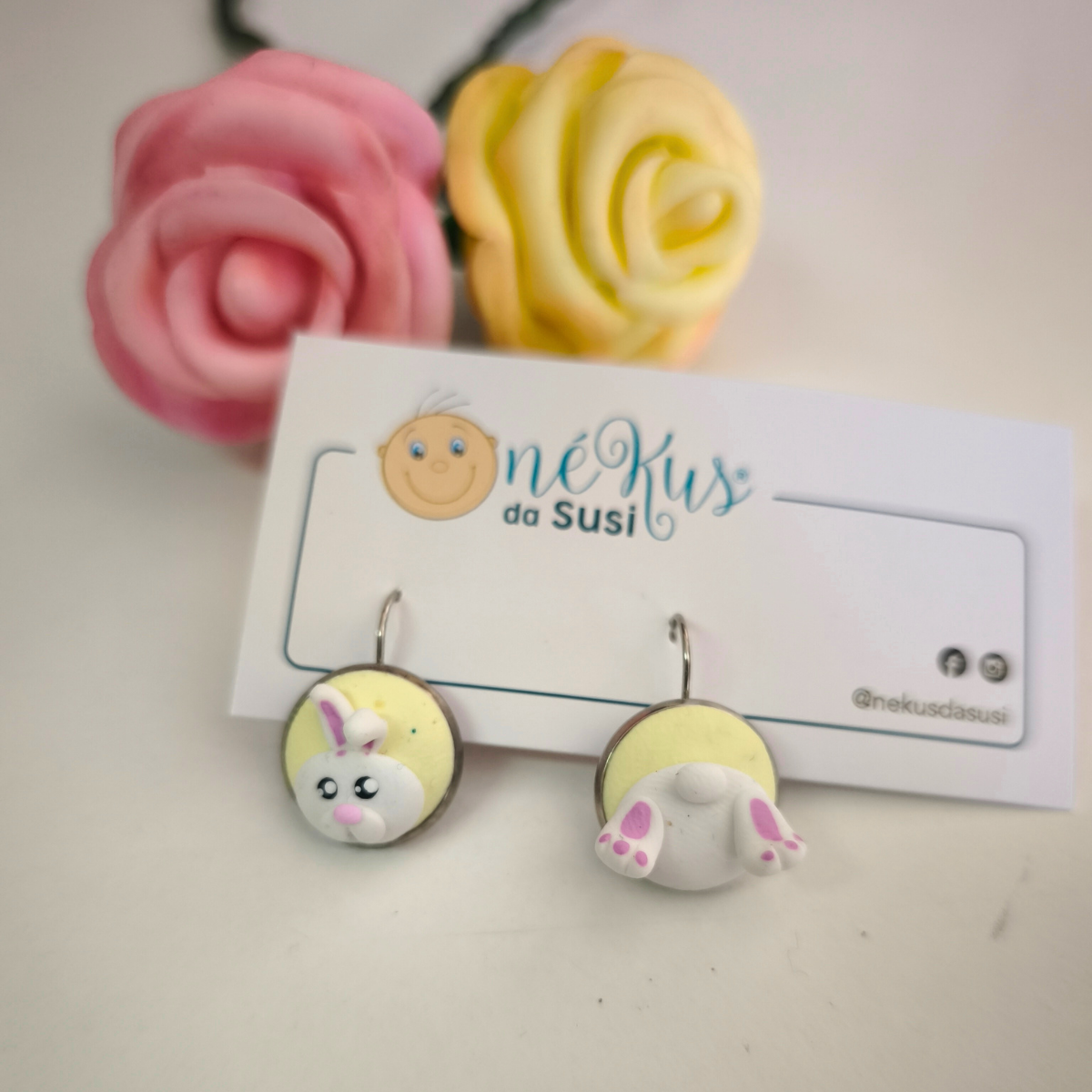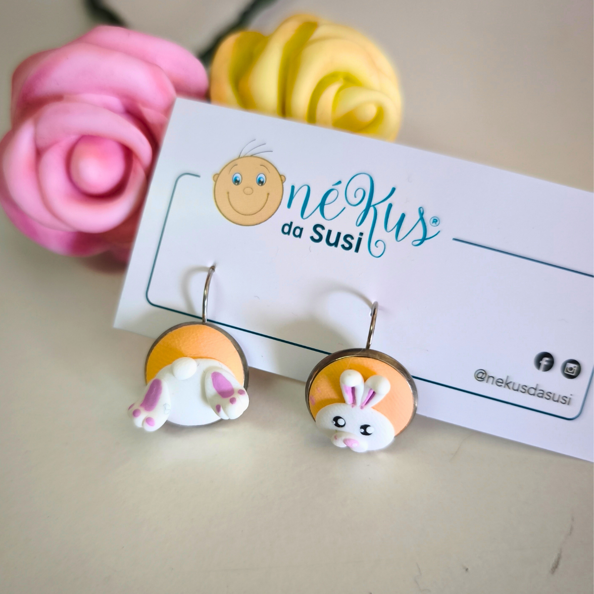 Estes brincos de Páscoa são modelados à mão, com um coelhinho adorável que espreita (ou se esconde!) em cada peça. Leves e confortáveis, são perfeitos para celebrar a época com um toque delicado e original.