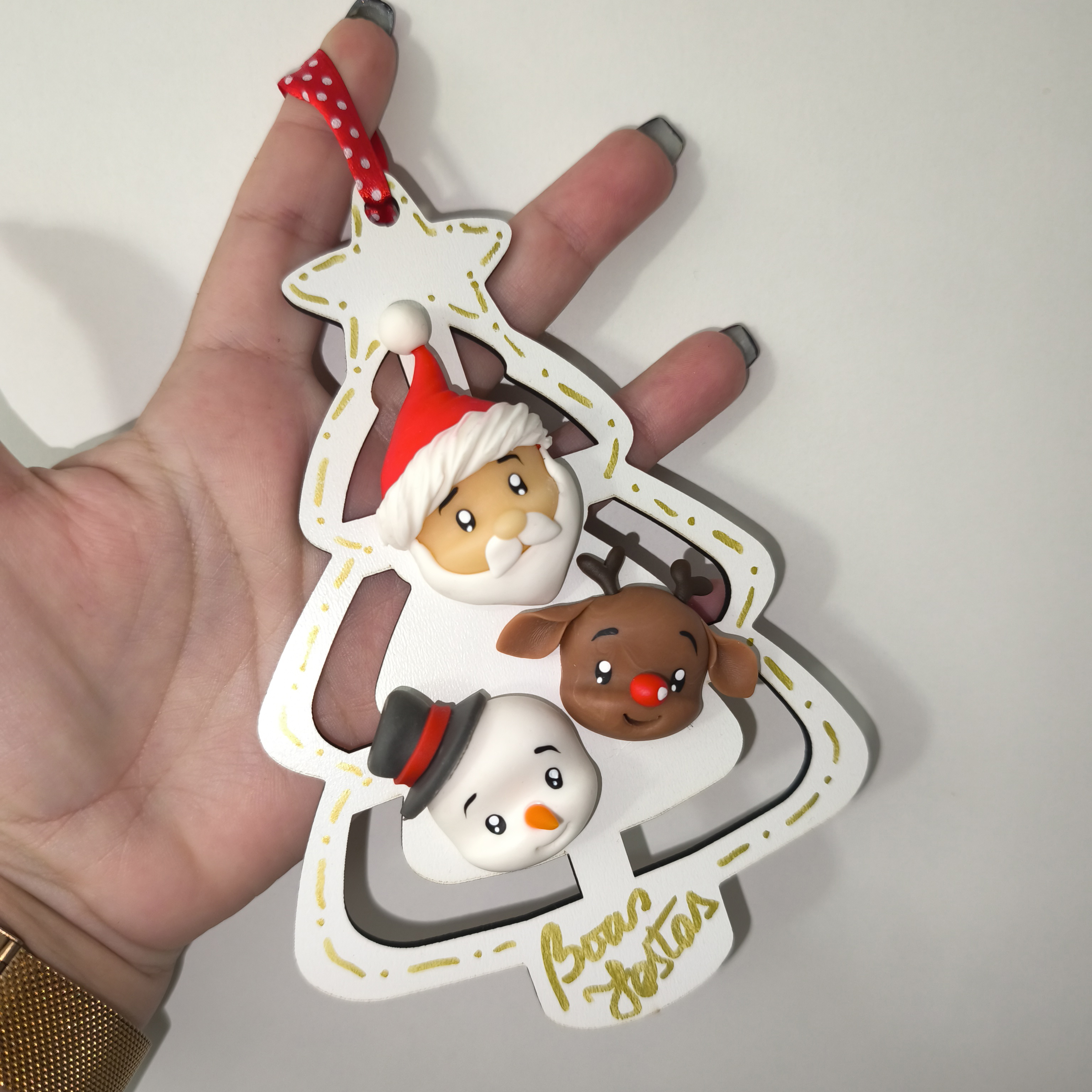 Celebra esta época festiva com esta encantadora árvore de Natal em MDF, com aproximadamente 16 cm de altura. Esta divertida decoração natalícia apresenta as carinhas mais fofas de personagens icónicos do Natal, trazendo alegria e um toque especial à sua decoração.